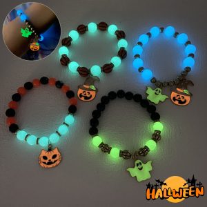 Halloween Vintage Bracelet Pumpkin Head Witch Hat Kitten Geometric Gothic Natural Stone Multicolor Beaded Bracelet Woman Party Prom Halloween